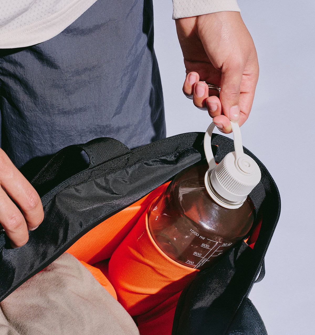 - Interior water bottle pocket