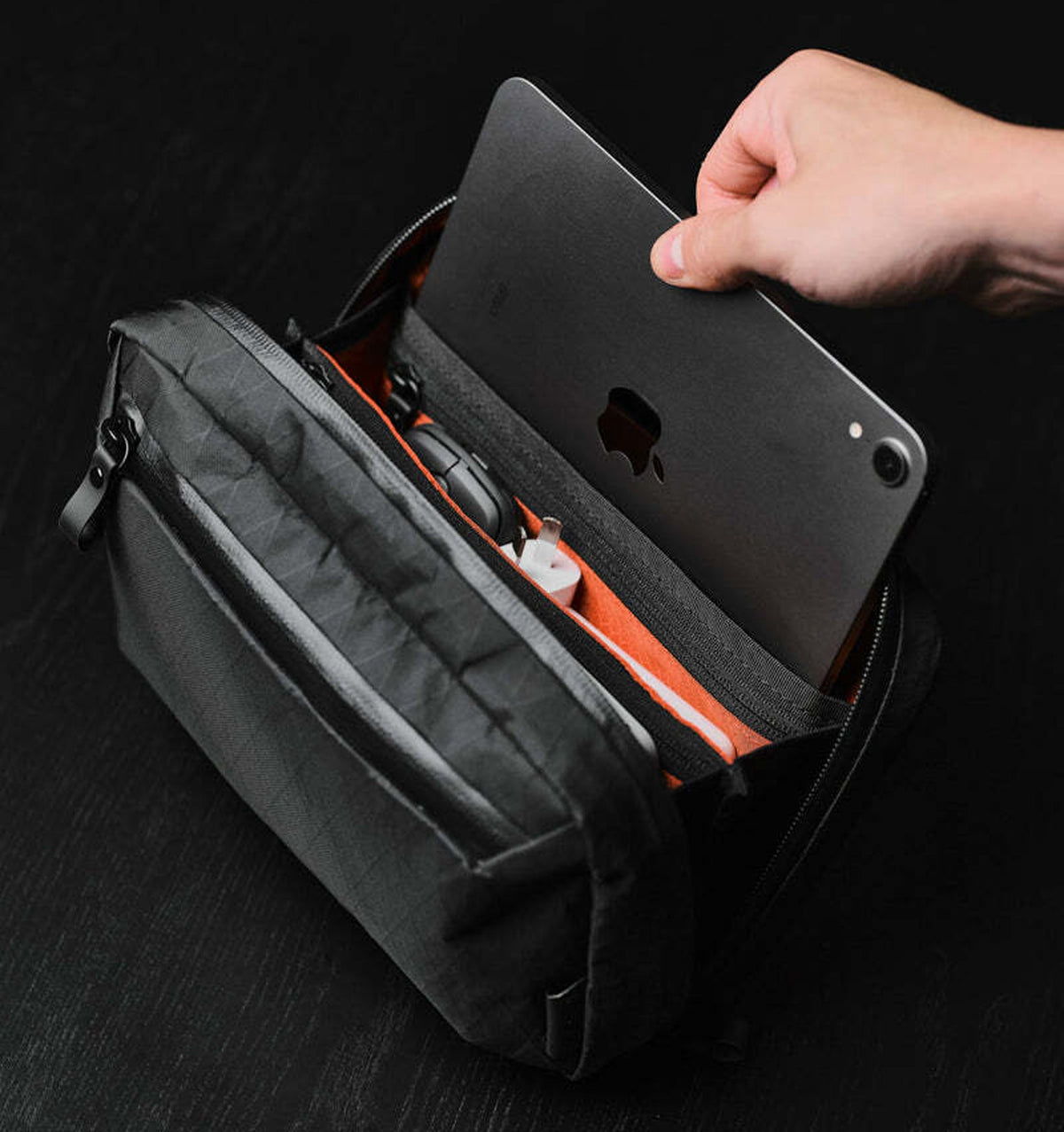 An intuitive tech case with smart organisation for essential gear on the go or at your desk - making your space both aesthetically pleasing and functional.