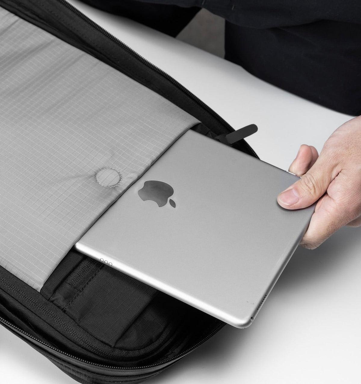 - Separated and suspended built-in laptop sleeve