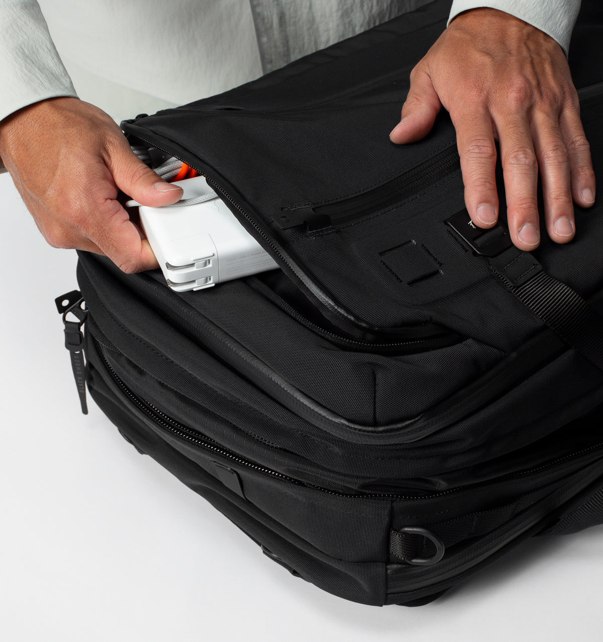 Your essentials are right at hand in the fast access panel and two additional exterior pockets function as both storage and pass-through to the interior. The top-pocket is especially made for our BOARDING KIT, with all your flight essentials.