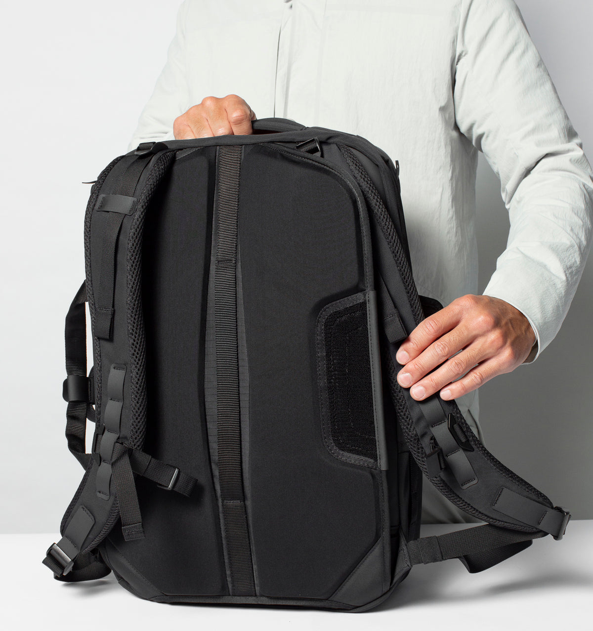 • Butterfly back panel for stowable straps