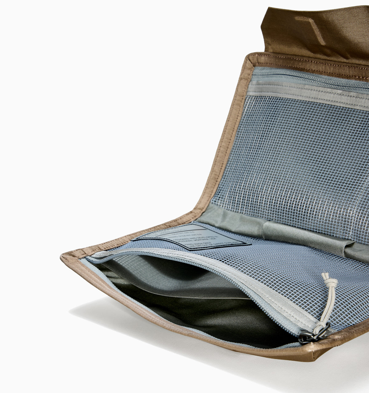- Full-length mesh pockets with laminated dividers creating more pockets
