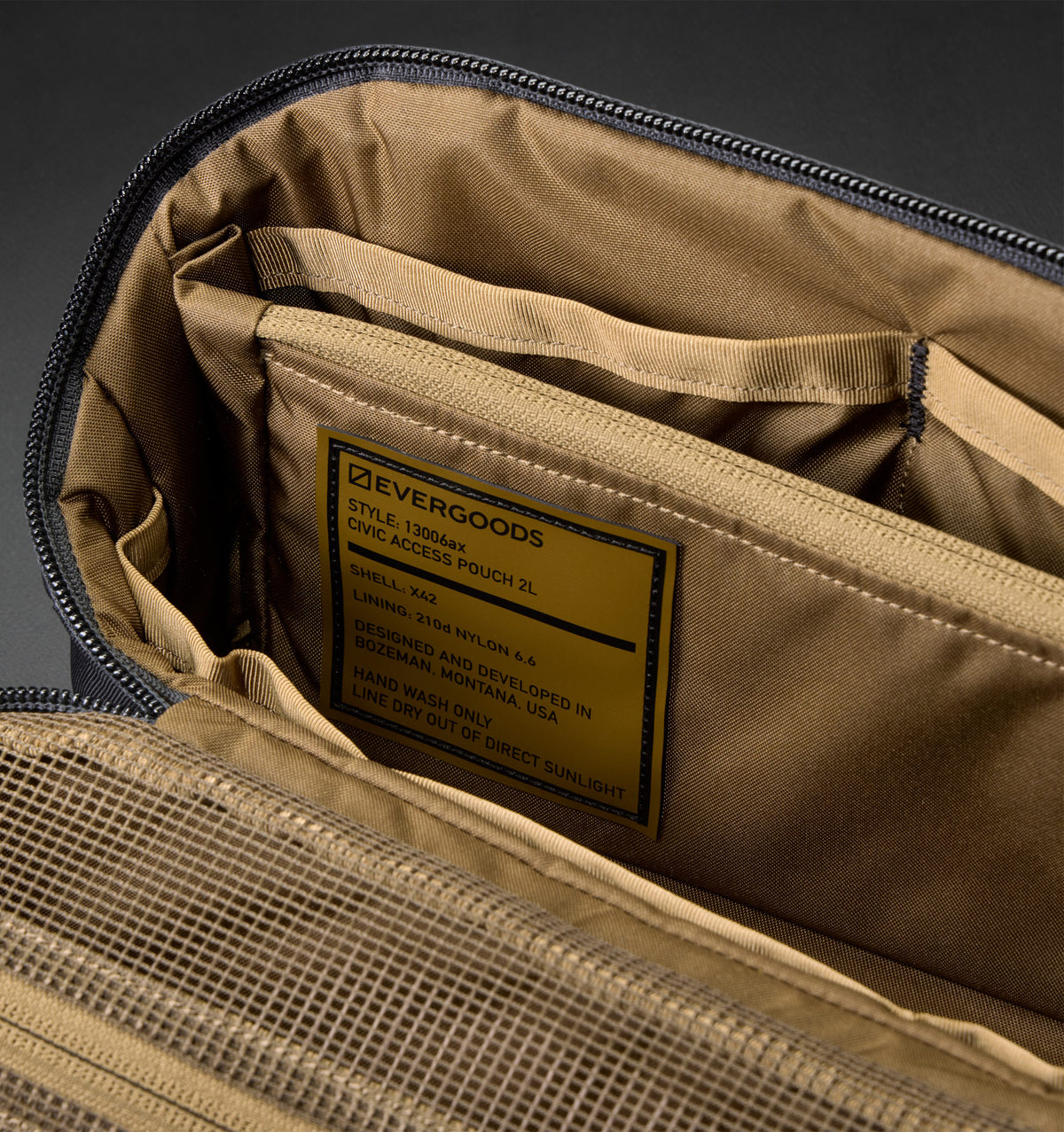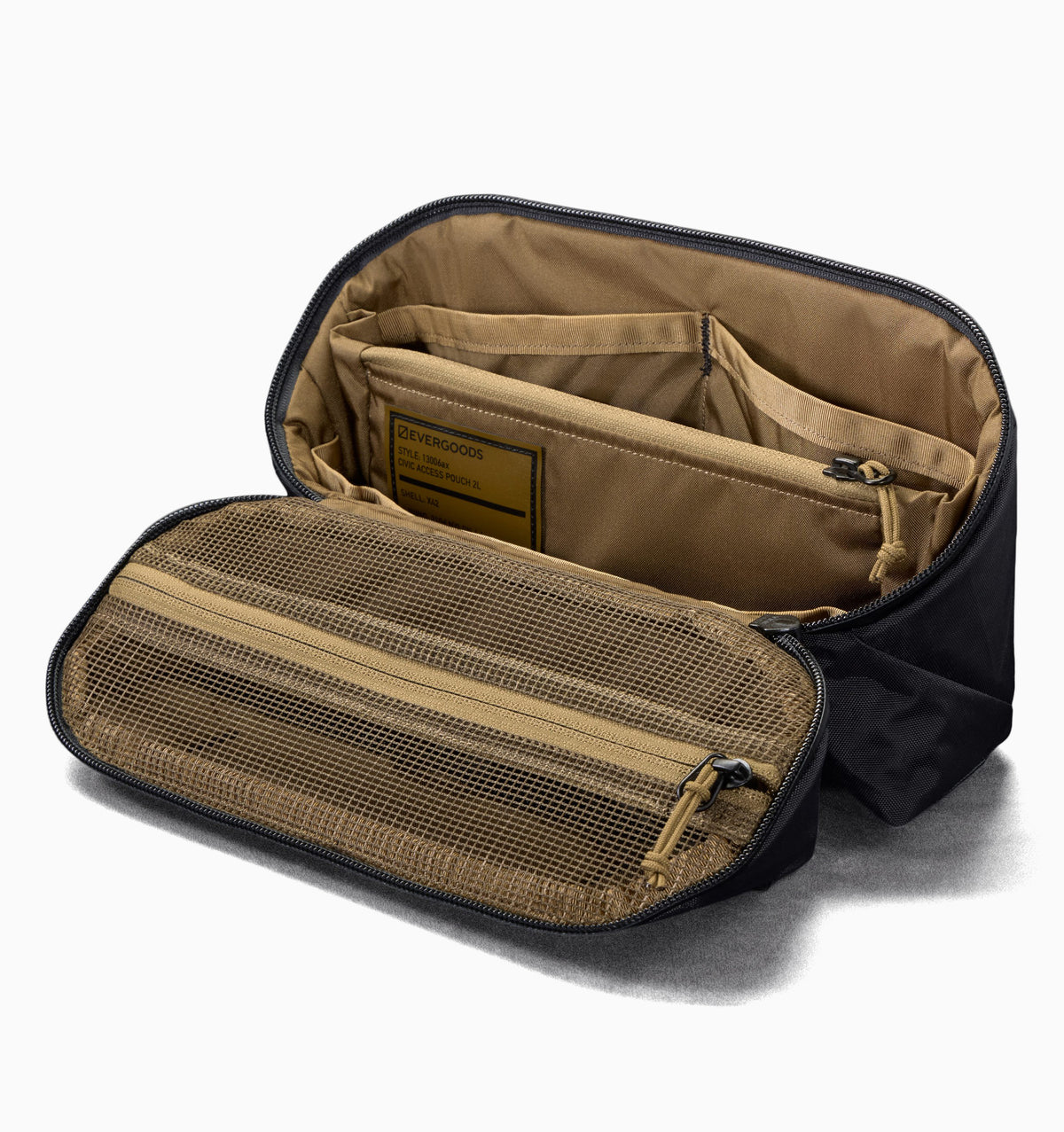 Inspired by advanced performance-forward sailcloth technology, X-Pac has become a favourite within the carry community for its durability, waterproofness, and impressive strength-to-weight ratio. For the Evergoods summer 2024 capsule collection, the adaptive organiser has been constructed in a stealth black X-Pac X42 shell with a brand-new covert coyote brown lining. Additionally, the collection has been upgraded with PU-coated YKK zippers to enhance weatherproofness.