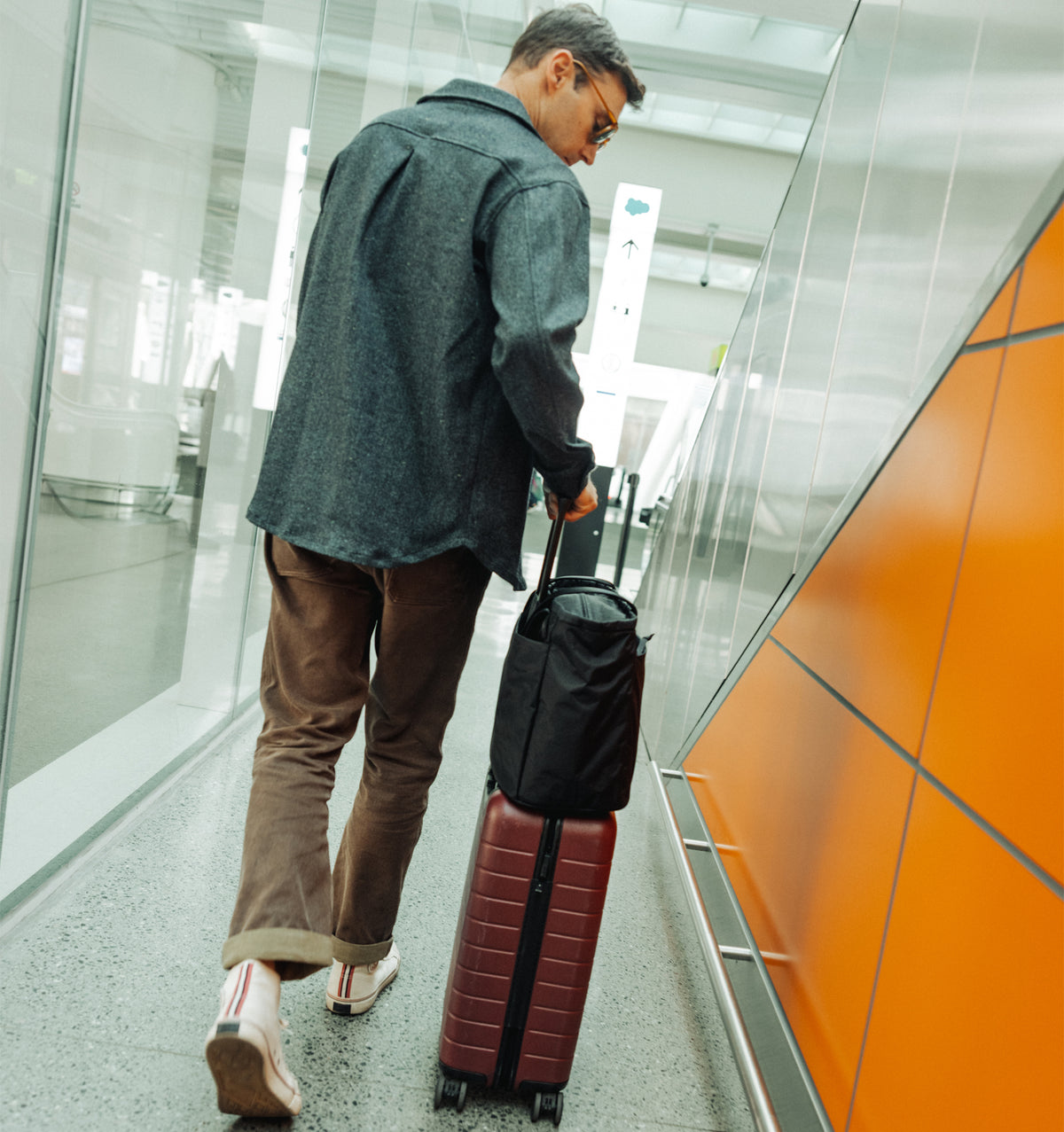 - Integrated Luggage Pass-Through - Behind the exterior quick-access pocket lies a tiny magnet that hides a secret luggage pass-through sleeve. Without opening any zippers or closures, CDT24 can drop onto roller luggage for easier travel.