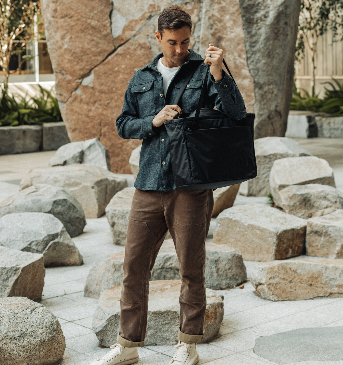 strength-to-weight ratio. To kickoff 2026, Evergoods constructed the freestanding tote in a stealth black X-Pac X42 shell and a covert coyote brown lining. In addition, they've added a PU-coated YKK zipper to the external pocket to enhance its protection against the elements.