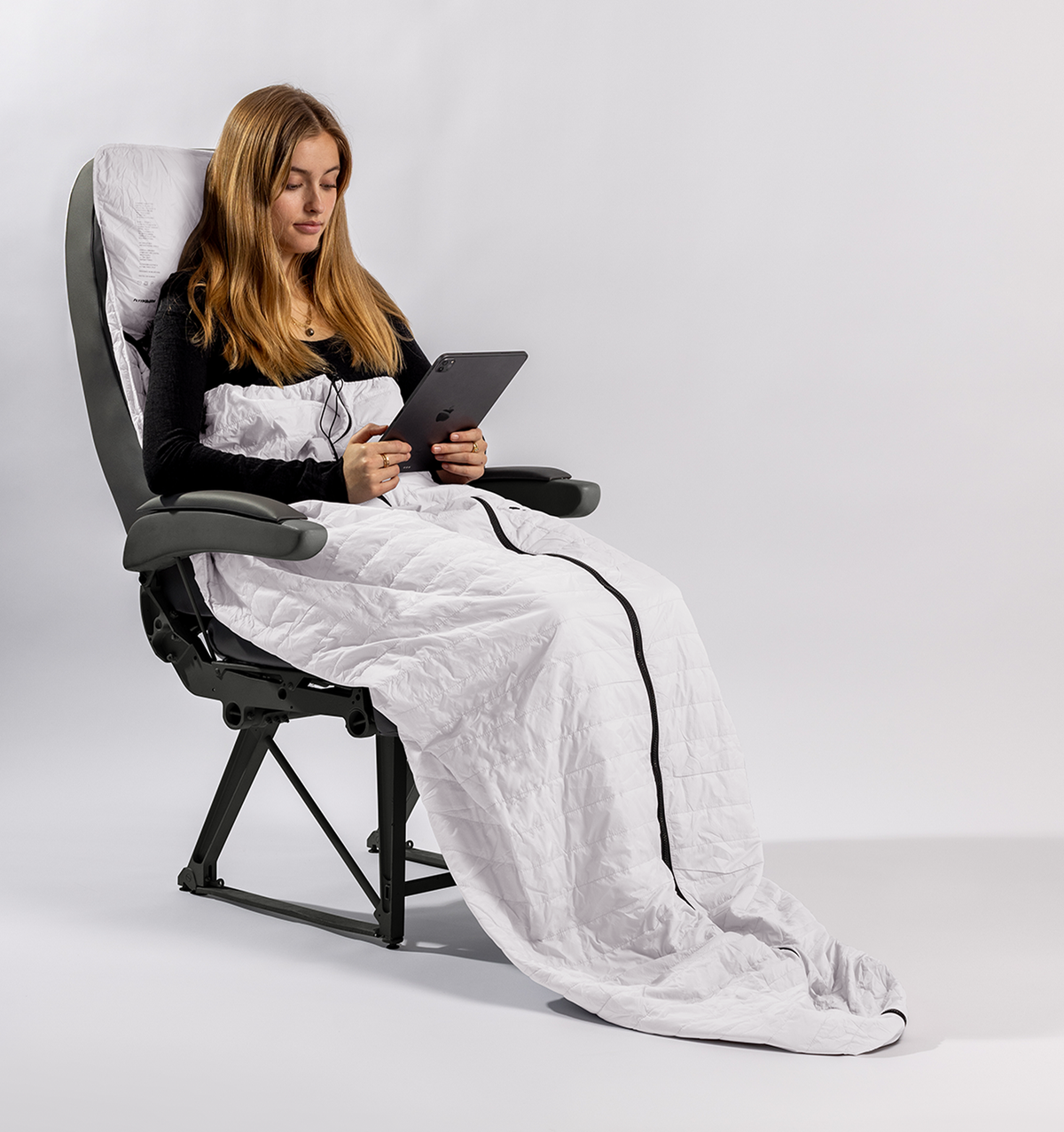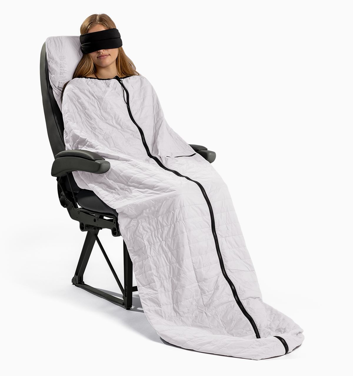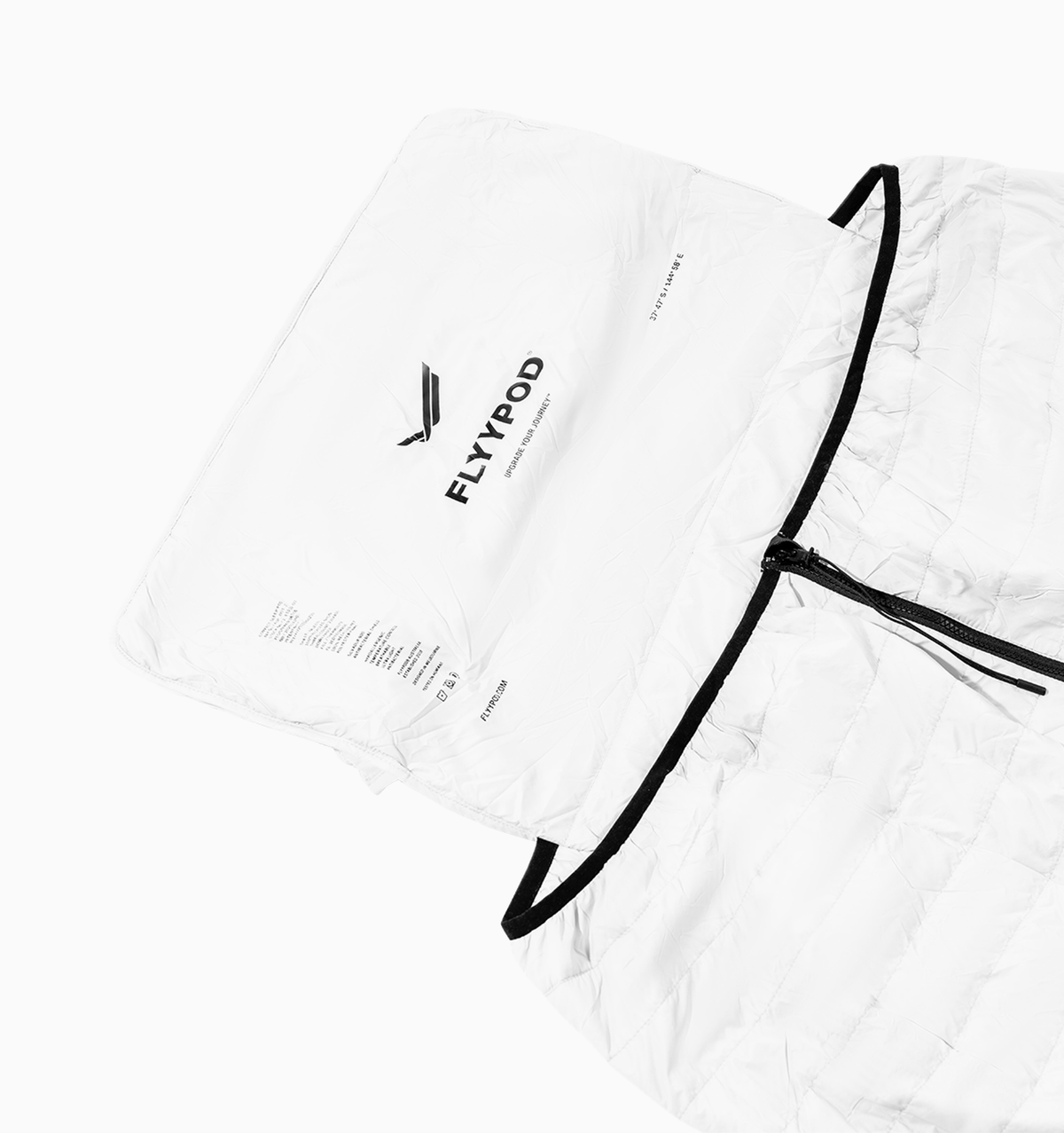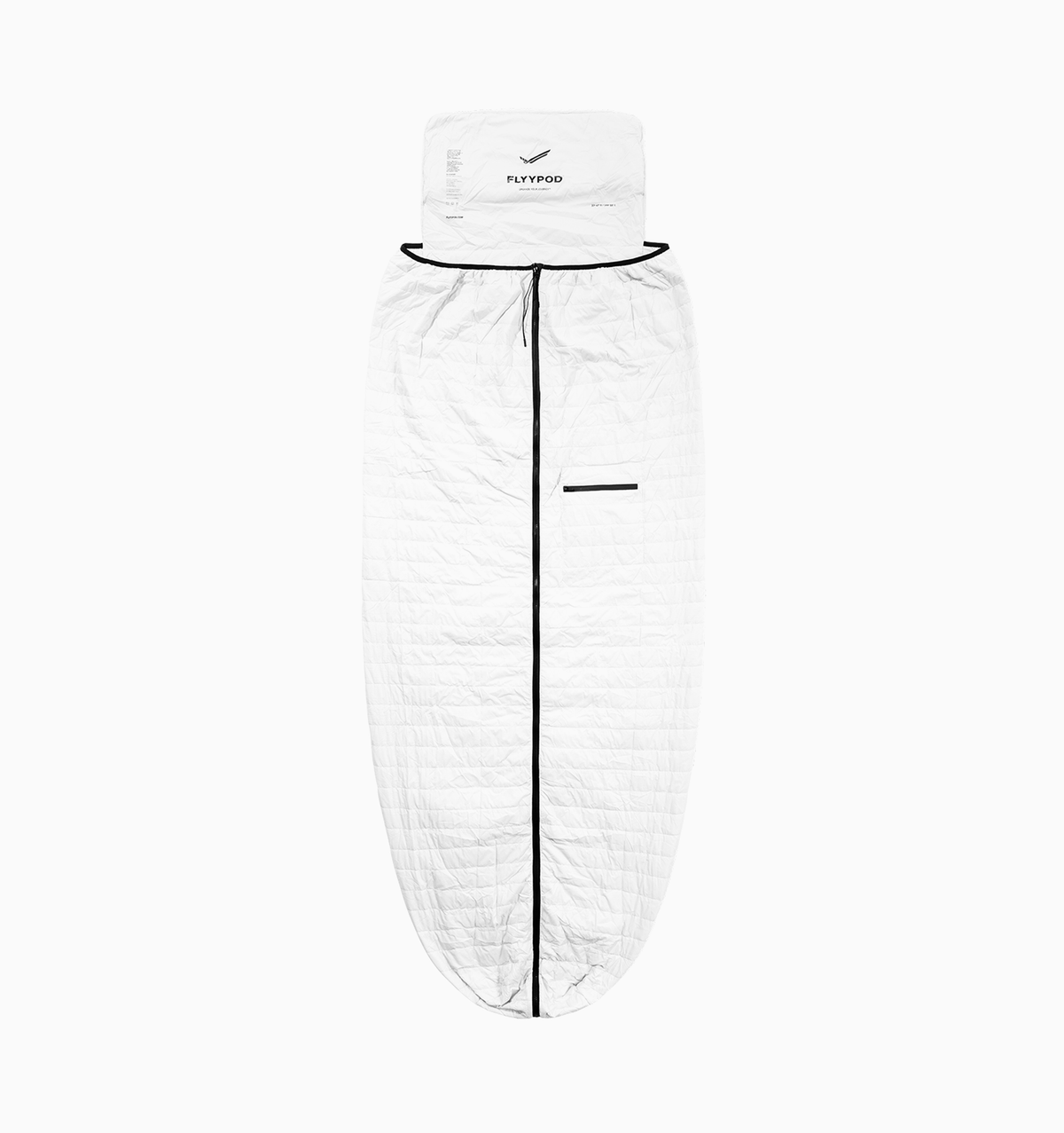 Introducing the Flyypod Sleep Pod Pro, your new, more compact passport to comfort on the flyy. Enjoy all the same benefits as the original sleep pod, now in a more convenient size. With its innovative core featuring a thin layer of Thermolite'™ recycled down alternative, it fits over the headrest of the seat and extends all the way to the floor. Designed to fold into its center zip pocket for ultimate portability, it can be used as a pillow and secured to your luggage with its built-in strap. Machine washable, the compact pod guarantees warmth and coziness during long, chilly flights, or unexpected airport delays.
