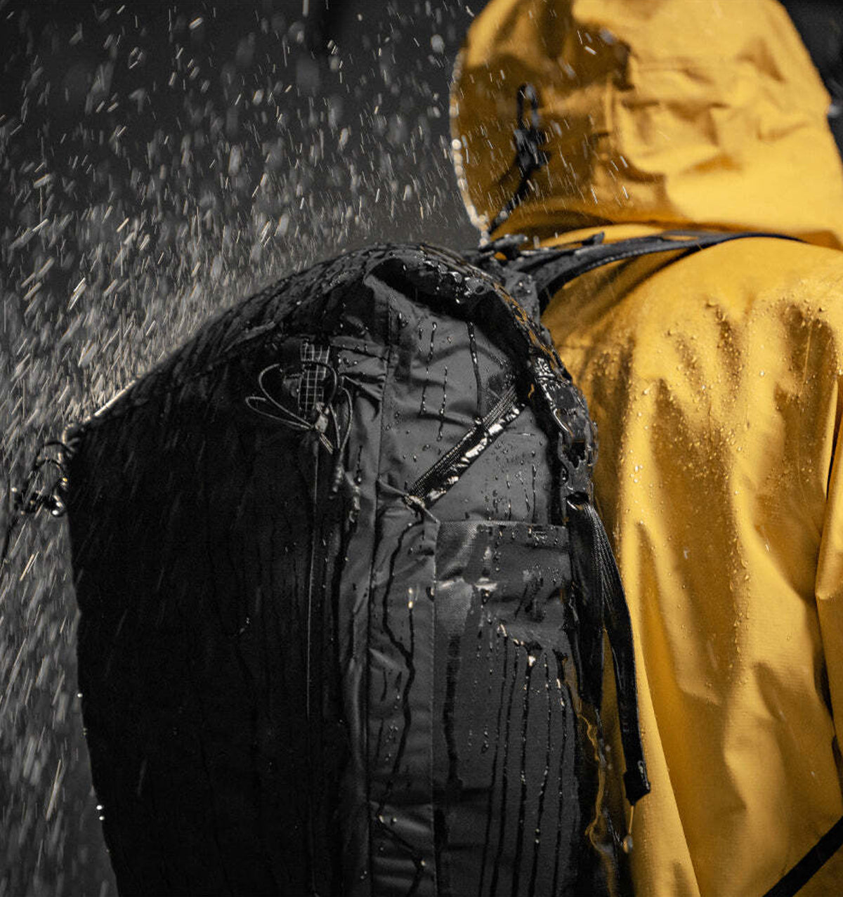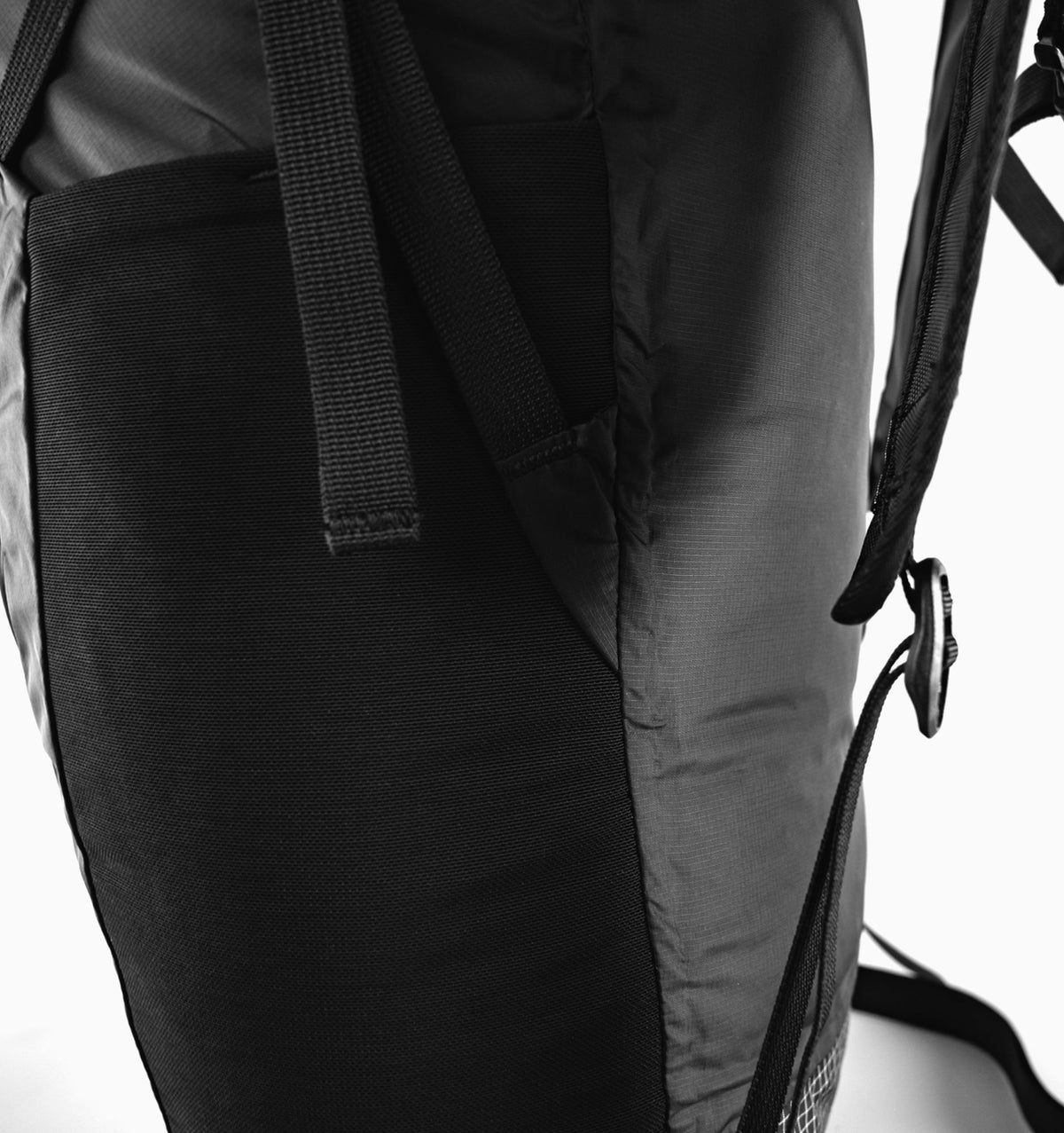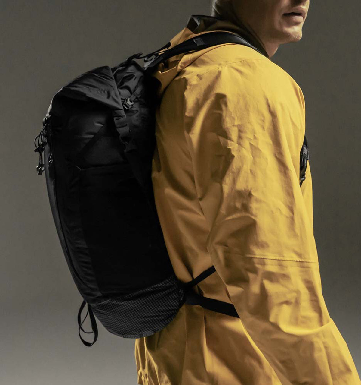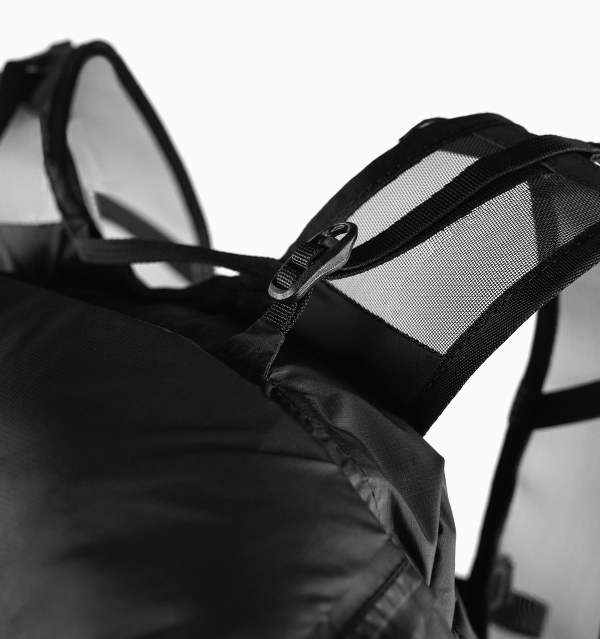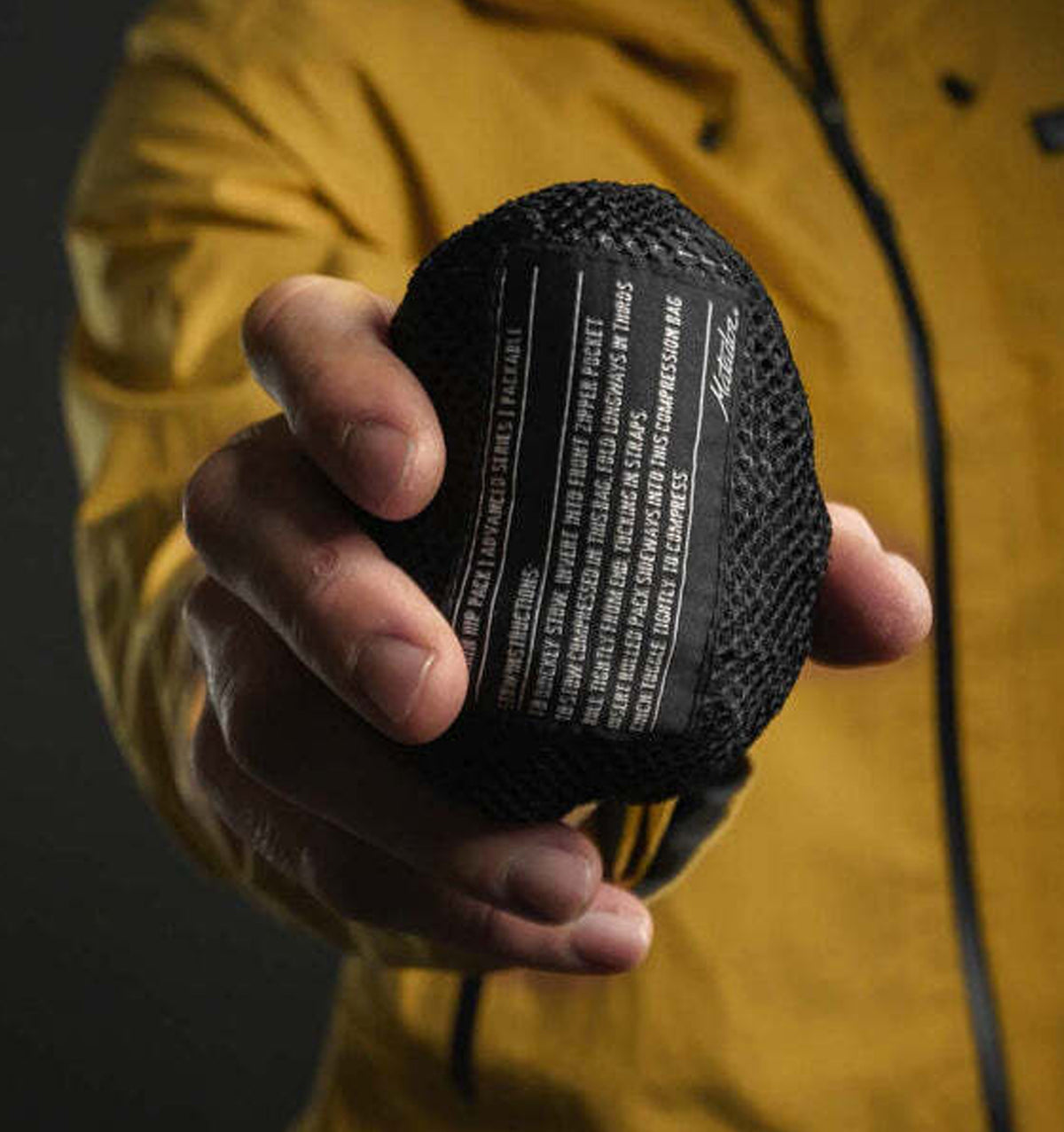 To stow, invert into the front pocket or compress further using the included mesh compression sack.