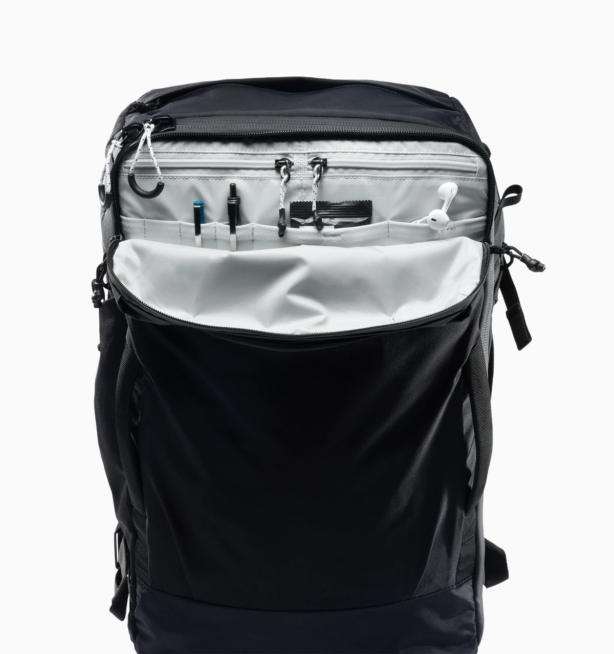 • Two main compartment entry points: clamshell access and top-loading access