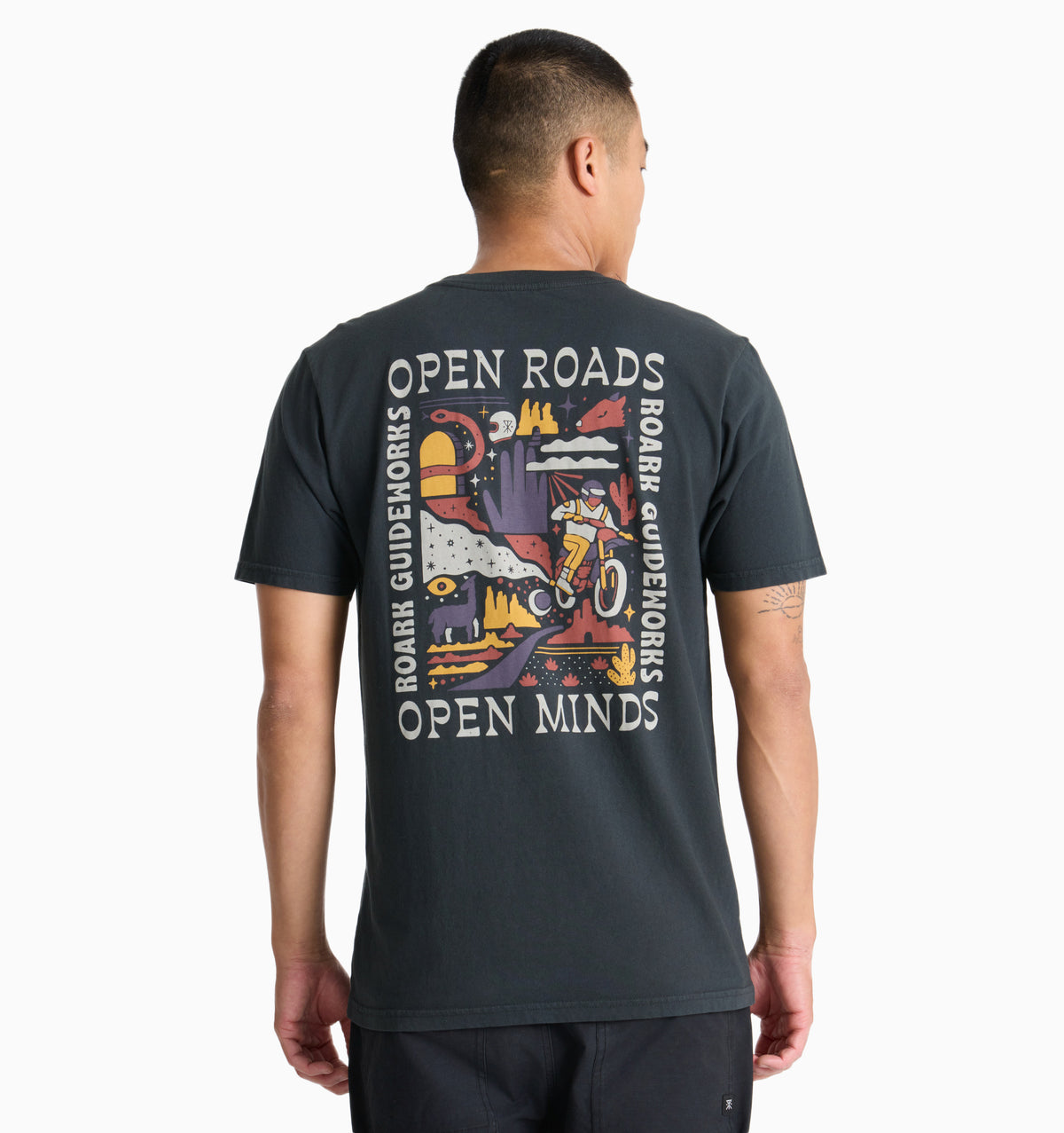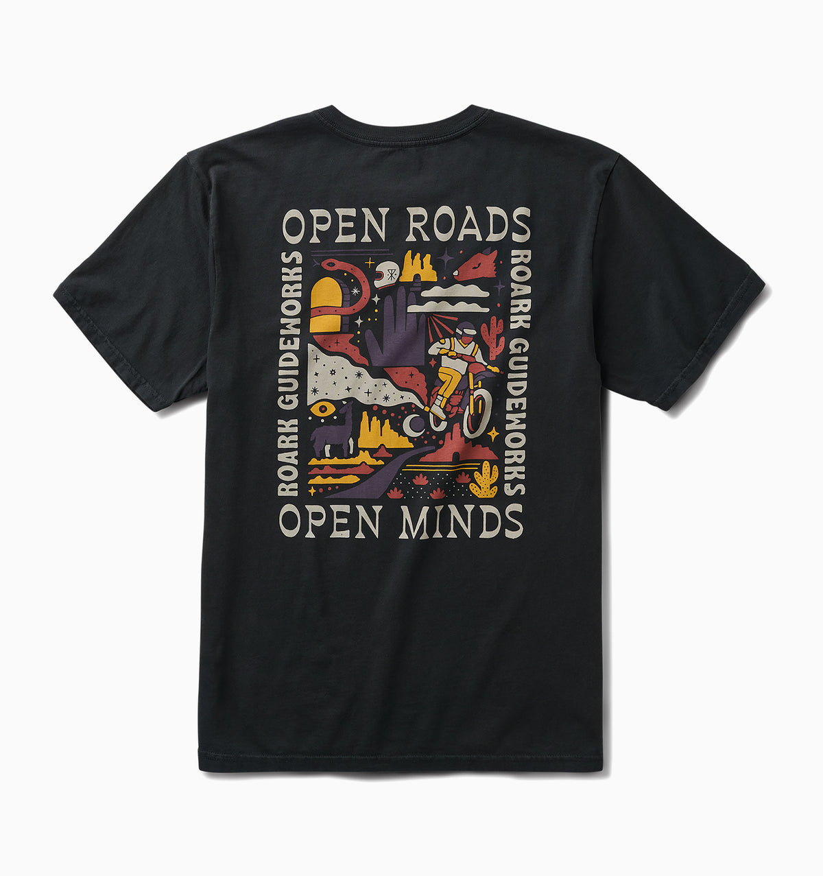 The Open Roads Open Minds Tee captures the spirit of Roark Guideworks with a bold, colourful back graphic that celebrates exploration and perspective. Featuring desert trails, wild landscapes, and a rider in motion, it's a reminder that the road ahead is as much about mindset as it is about miles.
