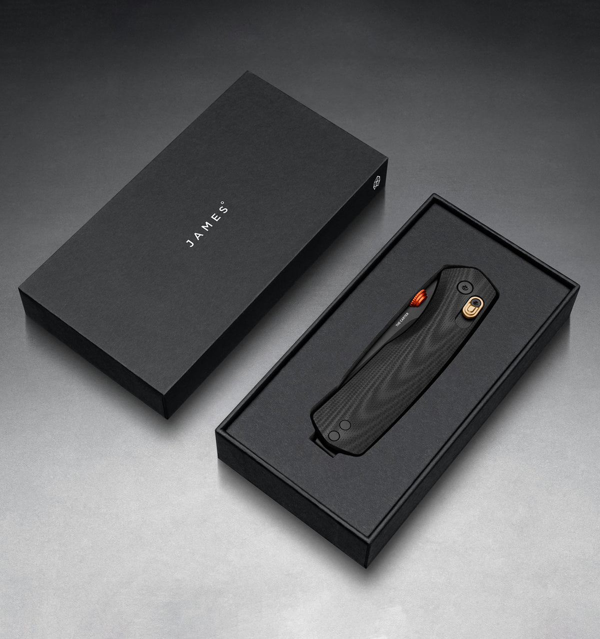 The James Brand - The Carter: The most advanced knife, slim, lightweight, fully ambidextrous, and easy to use with one hand. Features an ambidextrous slide lock, thumb disk opening, 3D machined scales, lanyard insert option, reversible deep carry clip, and a straight-edge blade.